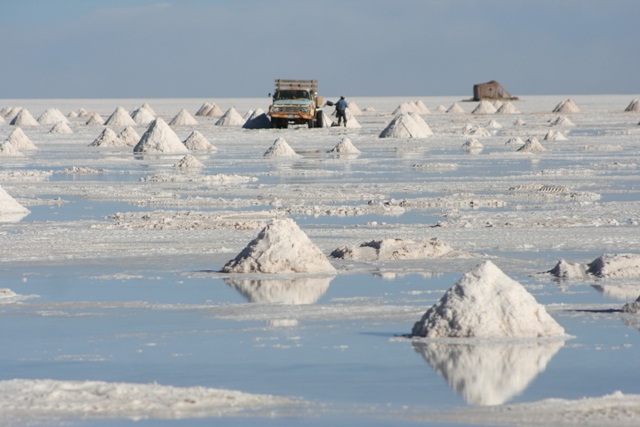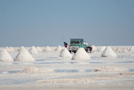 Le Salar a la taille de 2 départements français et quelques centaines d'hommes exploitent ce sel non iodé pour moins de 1 euro la tonne.