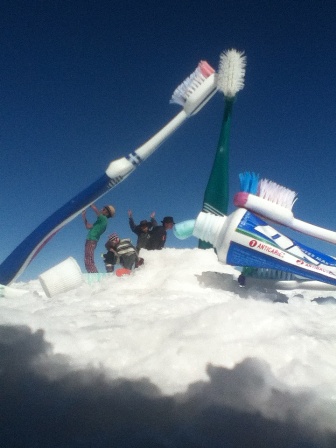 Les garçons profitent d'une halte pour remettre un joint de la capucine pendant que les filles se refont une beauté.