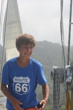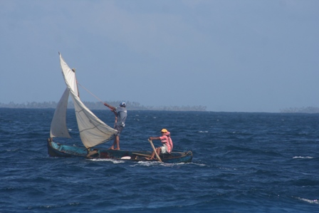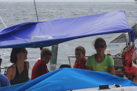 Nous quittons Puerto Lindo, la mer est calme et les dauphins nous accompagnent tout va bien. Mais, rapidement, la houle grossissant, nous sommes tous malades !(pas fort pour des sardines !)