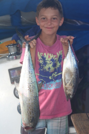 Nous repartons en direction de Puerto Obaldia, la frontière Colombienne et grâce à Lancelot, notre pêcheur à la traine attitré, nous avons tous les jours du poisson frais. Aujourd'hui, une bonite et un tazard de belle taille.