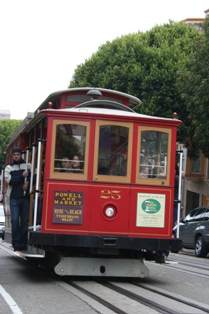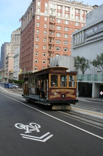 Ce Cable car unique au monde !( C'est un cable sous la chaussée tournant à vitesse constante de 15km/h qui tracte les cable car par le moyen d'une pince que le conducteur active ou pas)