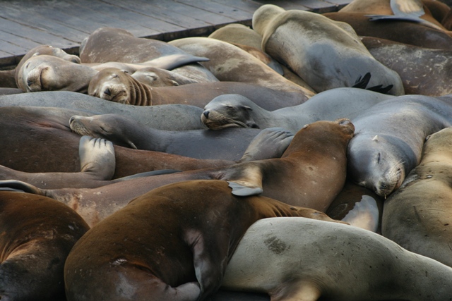 Une des curiosités de San Francisco, c'est une colonie d'otaries qui s'est installée un jour de 1990 sur le Pier 39 alors que la place était libre et qui ne l'a pas quittée depuis ! Spectacles et odeurs garantis !