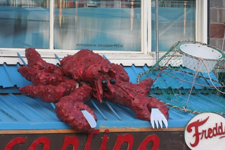 La plus grande frustration que nous avons en Argentine et au Chili, c'est de ne pas trouver du poisson et des crustacés frais ! En effet, pratiquement toute la pêche est directement préparée puis congelée dans les bateaux à destination de l'export. Bérengère dégote toutefois un morceau de crabe rouge géant, le centolla, la spécialité du coin.