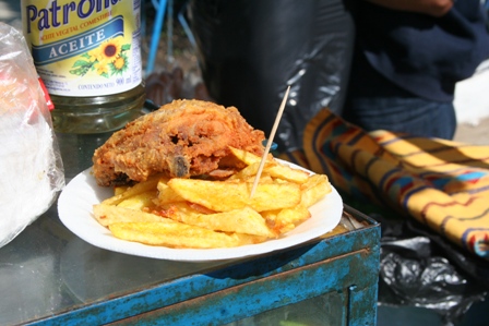 La spécialité culinaire du Guatemala, c'est le pollo frito con patatas (imbattable :0,8€ la portion !)