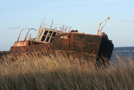 Nous longeons le détroit de Magellan et passons devant une estancia abandonnée mais célèbre dans laquelle sont passés pour la tonte des centaines de millier de moutons.