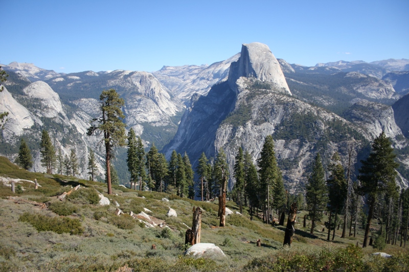 "iossémiti" ! Au coeur de la Sierra Nevada, des milliers d'hectares de forêts et de montagnes entre 600 et 3900 mètres d'altitude, en son centre , une vallée glaciaire, la vallée de Yosemite qui est dominée par 2 fantastiques monolithes, El Capitan et Half Dome
